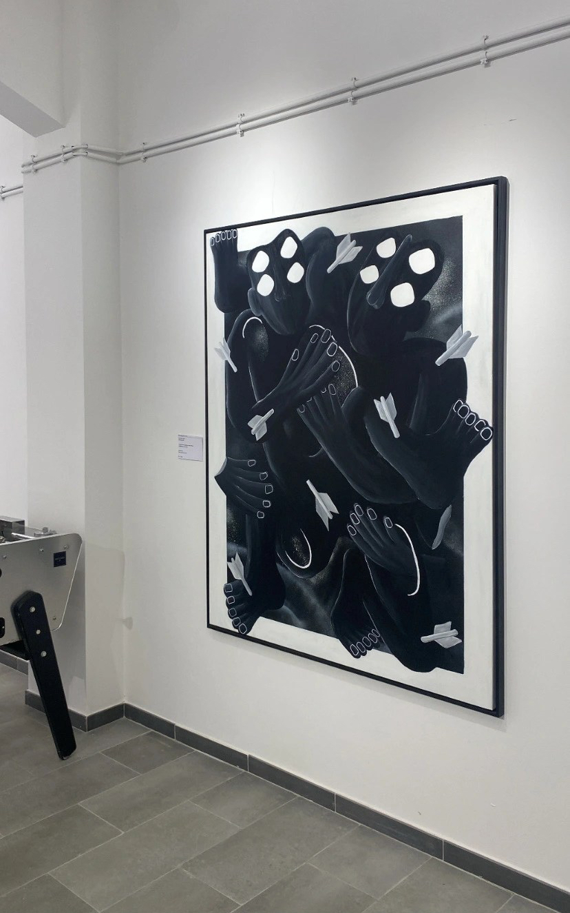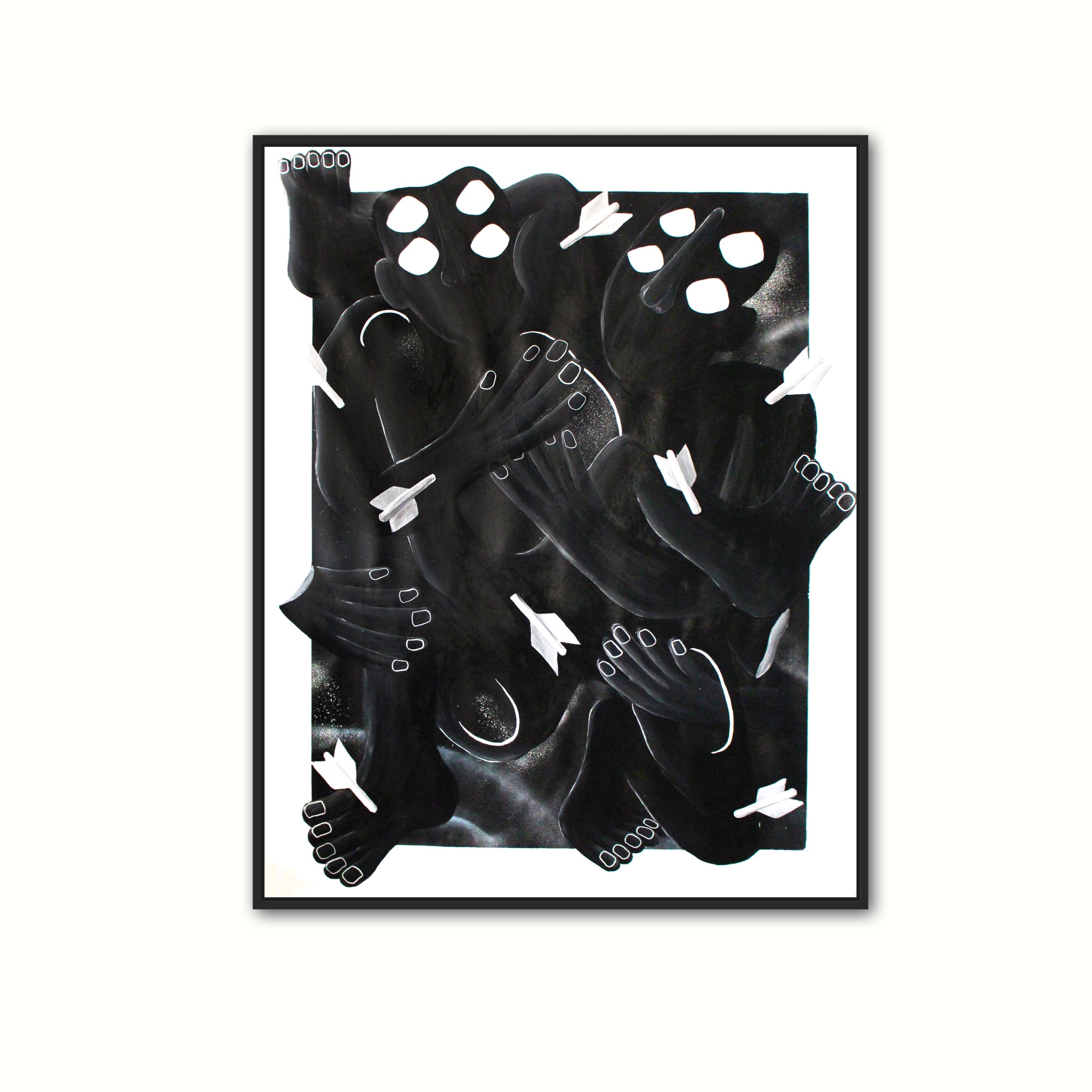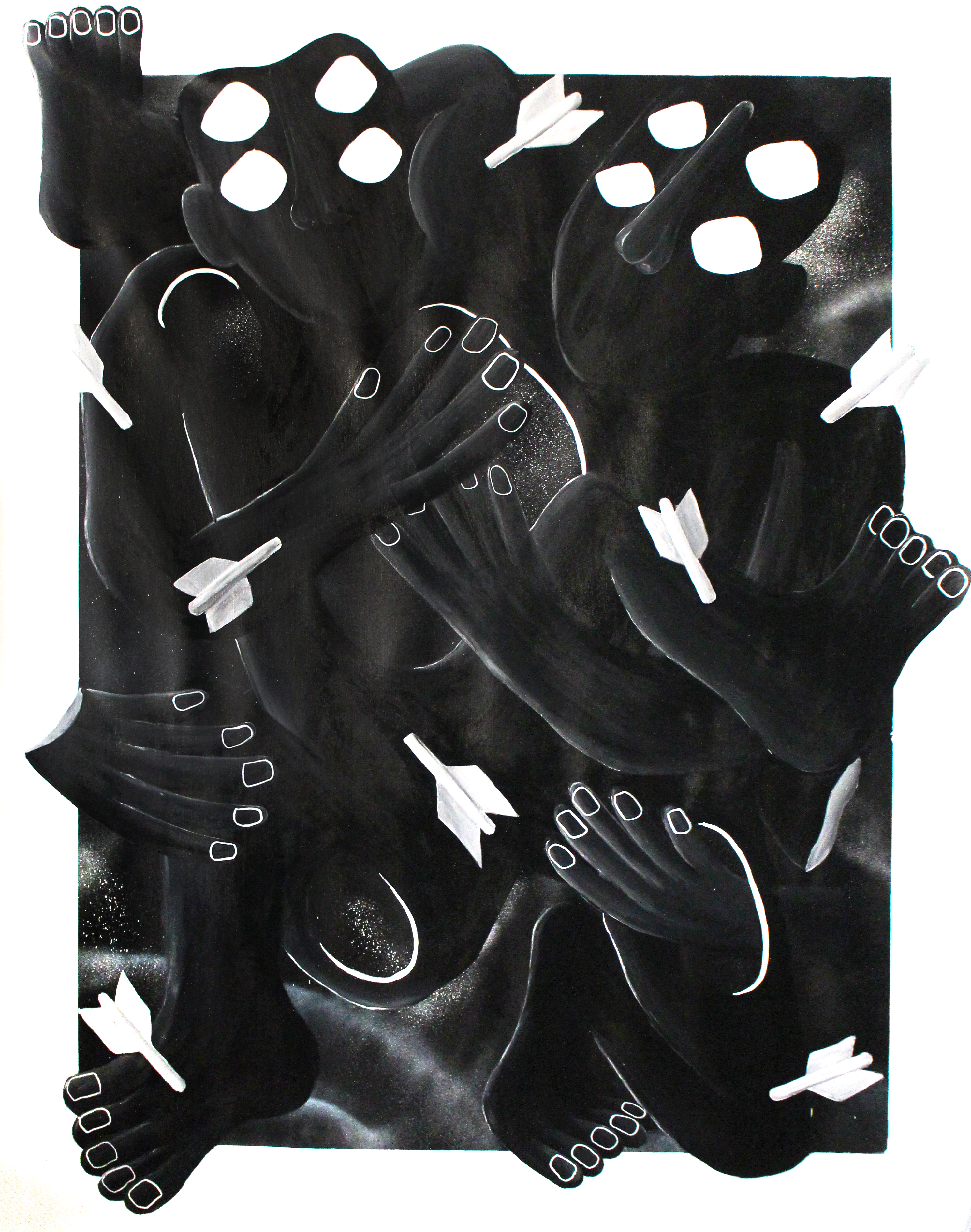 Peinture et feutre acrylique, pastel à l’huile, bombe aérosol sur toile.