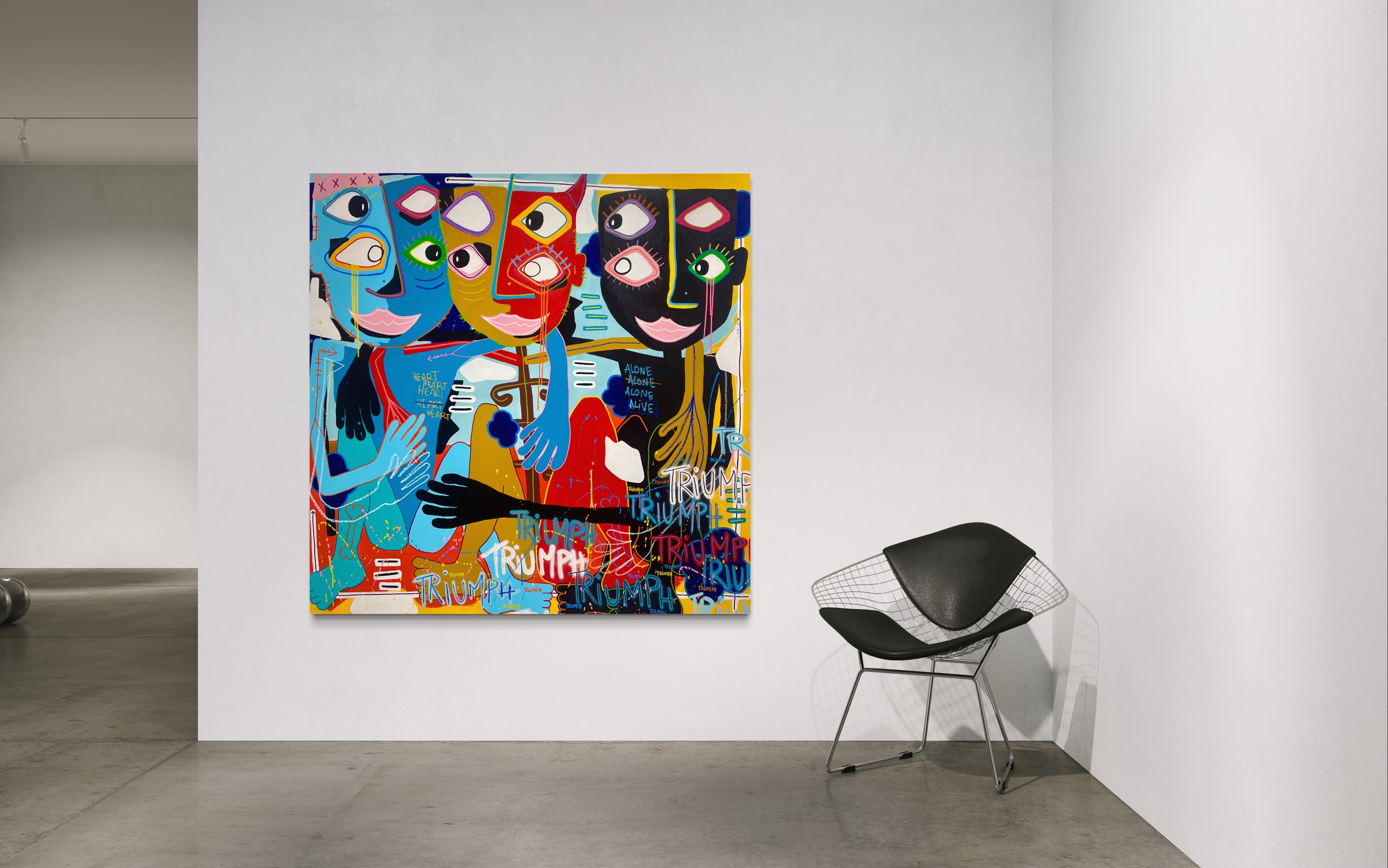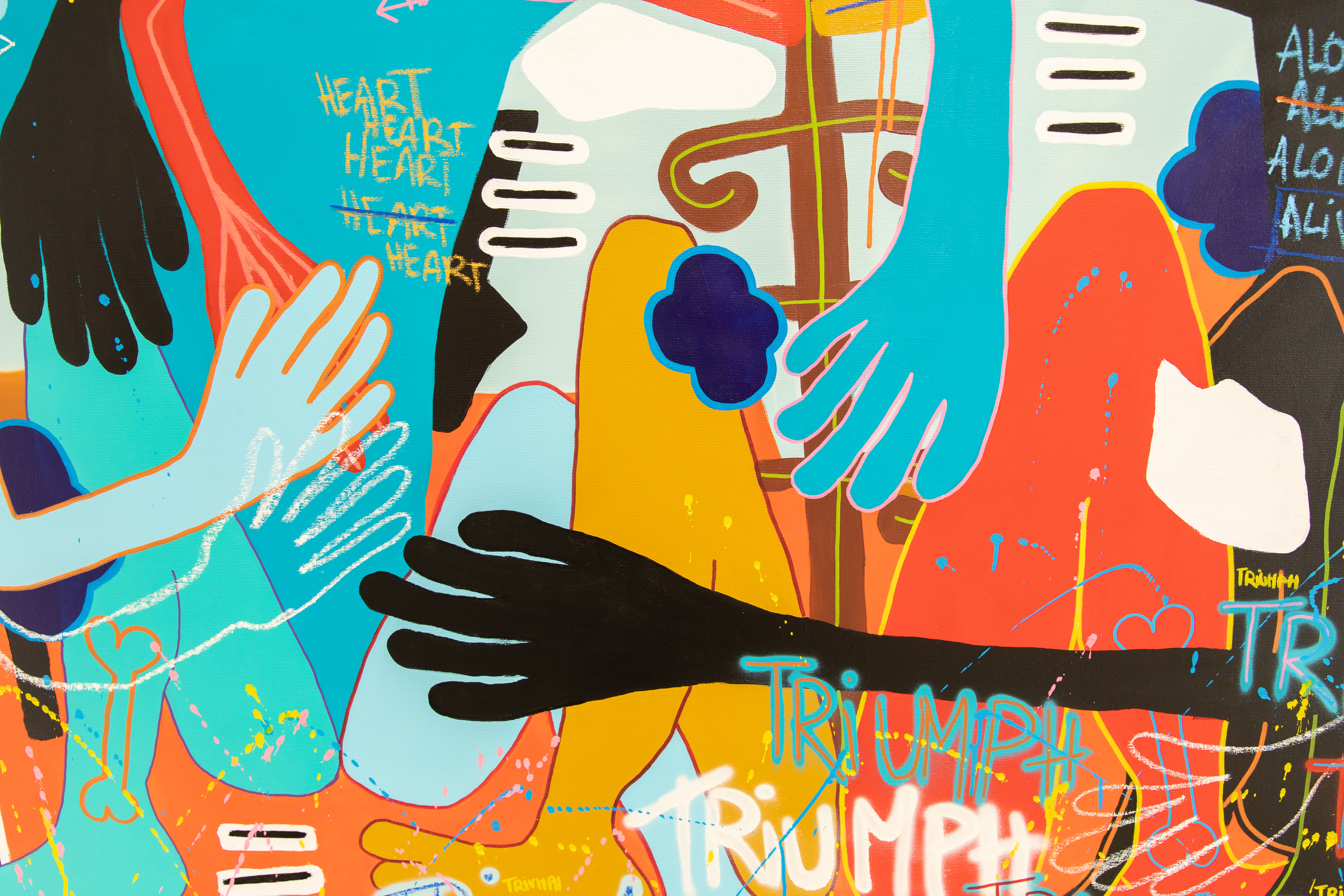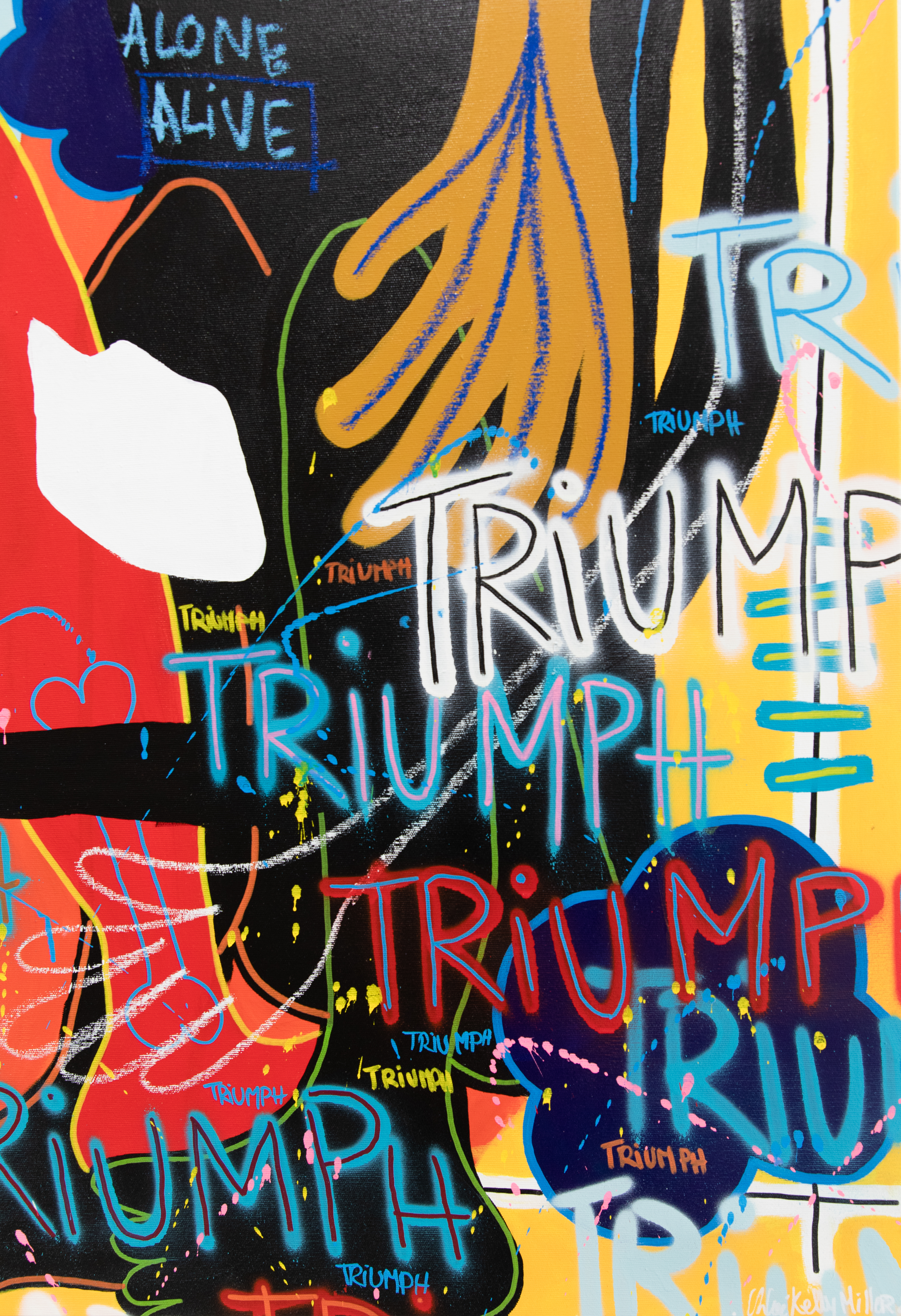 Pittura è marcatura acrilica, pastellu à l’oliu, spray è matita di culore nantu à tela.